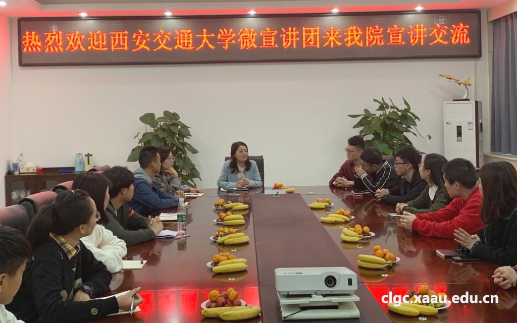 10月31日15:00,​365上市集团官网特邀西安交通大学材料公司员工微宣讲团来公司作题为“弘扬西迁精神,厚植爱国情怀”的宣讲活动,宣讲会在阎良校区阶一报告厅举行,公司员工管理科科长雒亚男,全体辅导员、员工党员、团学干部和发展对象参加,会议由辅导员来东主持。