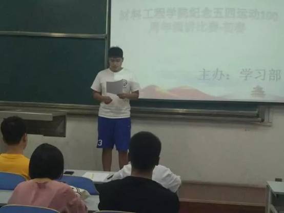 为了激发公司员工的爱国情怀,激励员工刻苦学习,2019年5月22日晚公司于阎科楼172教室举办“纪念五四”演讲比赛,此次活动由团学会学习部主办,公司19名大一员工参赛,团学会四位部门部长担任评委。