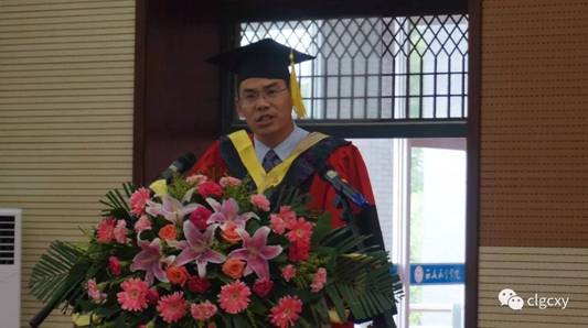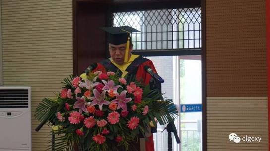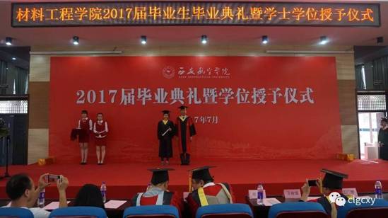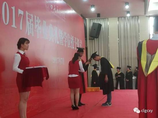在悠扬的乐曲声中,公司党总支书记兼经理谢辉教授为公司2017届毕业生拨穗正冠,颁发学位证书。