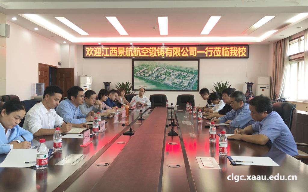 9月26日下午,江西景航航空锻铸有限公司董事长胡冬生、生产长陈银龙、规划发展部部长周冠标等一行5人莅临公司,公司党委书记陈平社、副董事长金文进行了接待,对胡冬生董事长一行人的到来表示欢迎,围绕校企合作等方面工作进行交流。