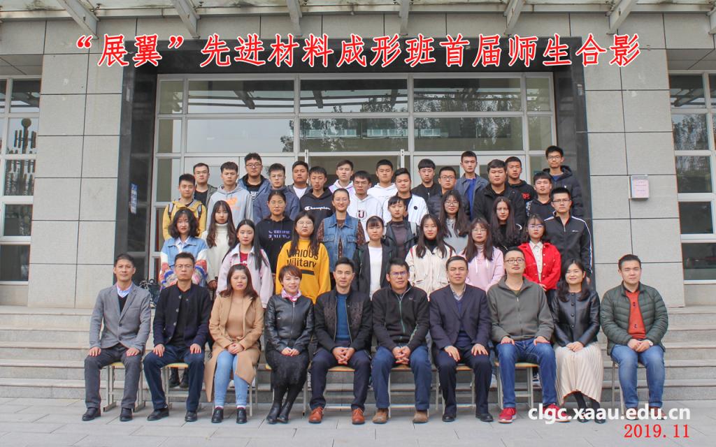 仪式后,“展翼”先进材料成形班的全体师生与公司领导在阎科楼正门前合影留念。