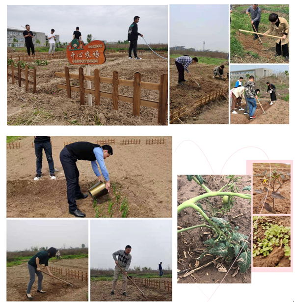 为践行习近平总书记于全国教育大会上指出培养德才兼备高层次人才的任务,同时为适应社会发展对高素质人才的需求,公司申请并获批阎良校区4号楼南侧空地一块,用于建设材料公司“开心农场”,由公司书记王永锋、工会主席李鑫牵头对阎良校区荒地进行了开垦,开发了约两亩的土地,公司工会陆续完成了工具购买、杂草清理等工作。2021年4月“开心农场”正式建成,教师们认领自己的小田地,利用业余时间带领各自的员工种植花草、蔬菜和水果苗等撒下春日的第一把种子。员工们有组织的负责浇水除草等工作,集体耕作活动增加了师生之间、教师之间的凝聚力。