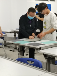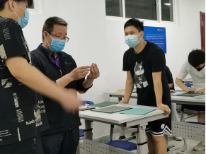 老师们的到来极大的促进了同学们的训练热情。赛前动员结束后,王栓强老师对现场正在进行练习的同学们逐一指导,指出金相试样磨制过程中存在的问题。