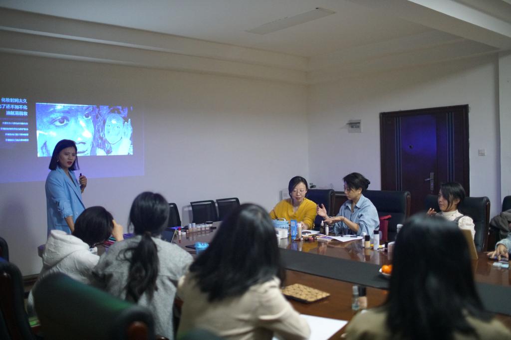 活动中,公司向每位到场的女教职工赠送了鲜花。现场,女教师们积极参与互动,化妆师为参加培训的每位女教师化上了漂亮的妆容,并针对她们各自的特点DIY设计了符合她们的眉形妆容,氛围温馨和谐,到场人员脸上都洋溢着灿烂的笑容。