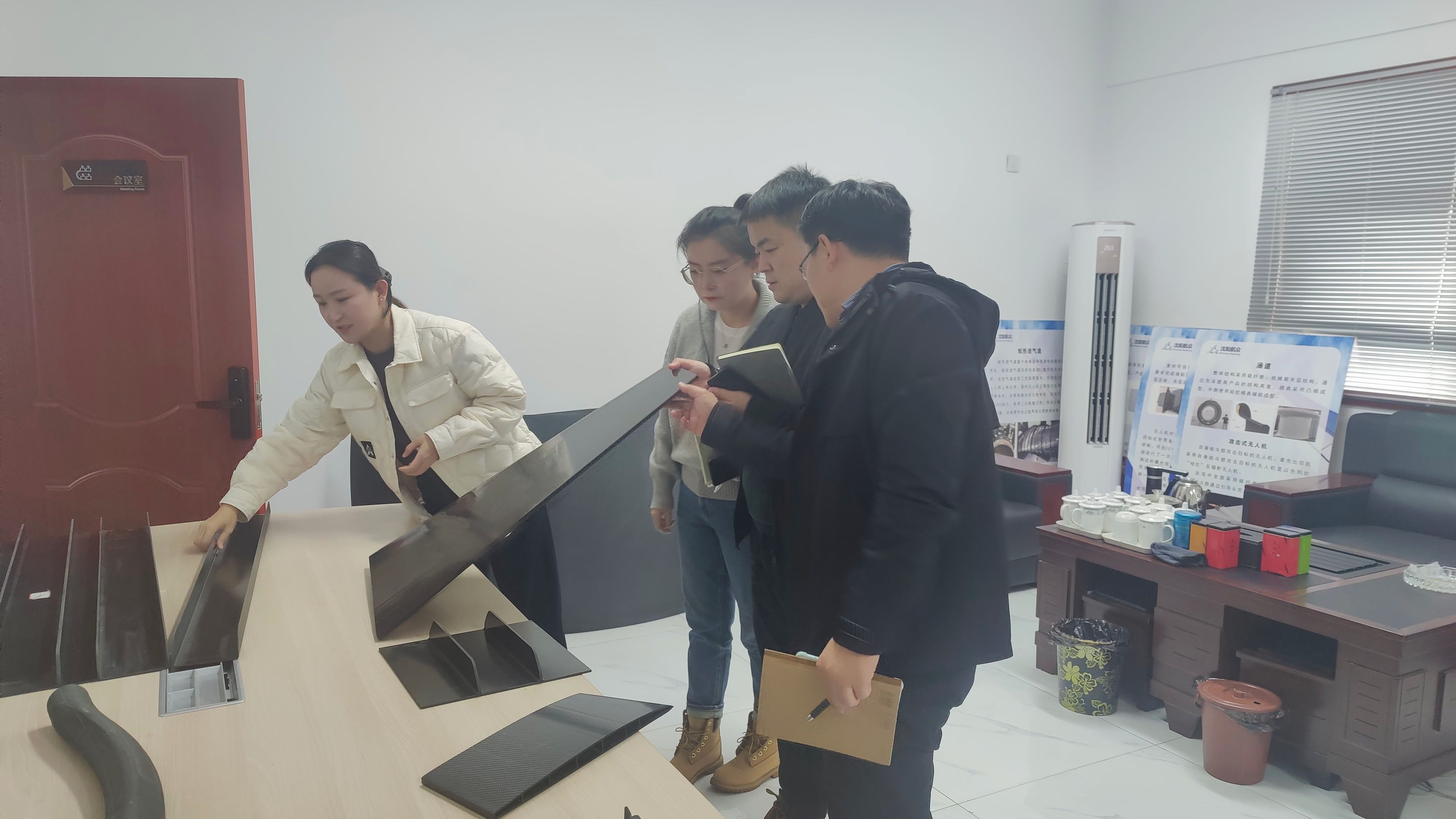 10月30日上午,公司党总支副书记高均立,副经理李兆,2025届就业辅导员史倩茹一行三人赴沈阳航众机械设备有限公司西安分公司进行调研交流,公司复材事业部经理马全芝、技术总工梁继超热情接待了公司的到访。