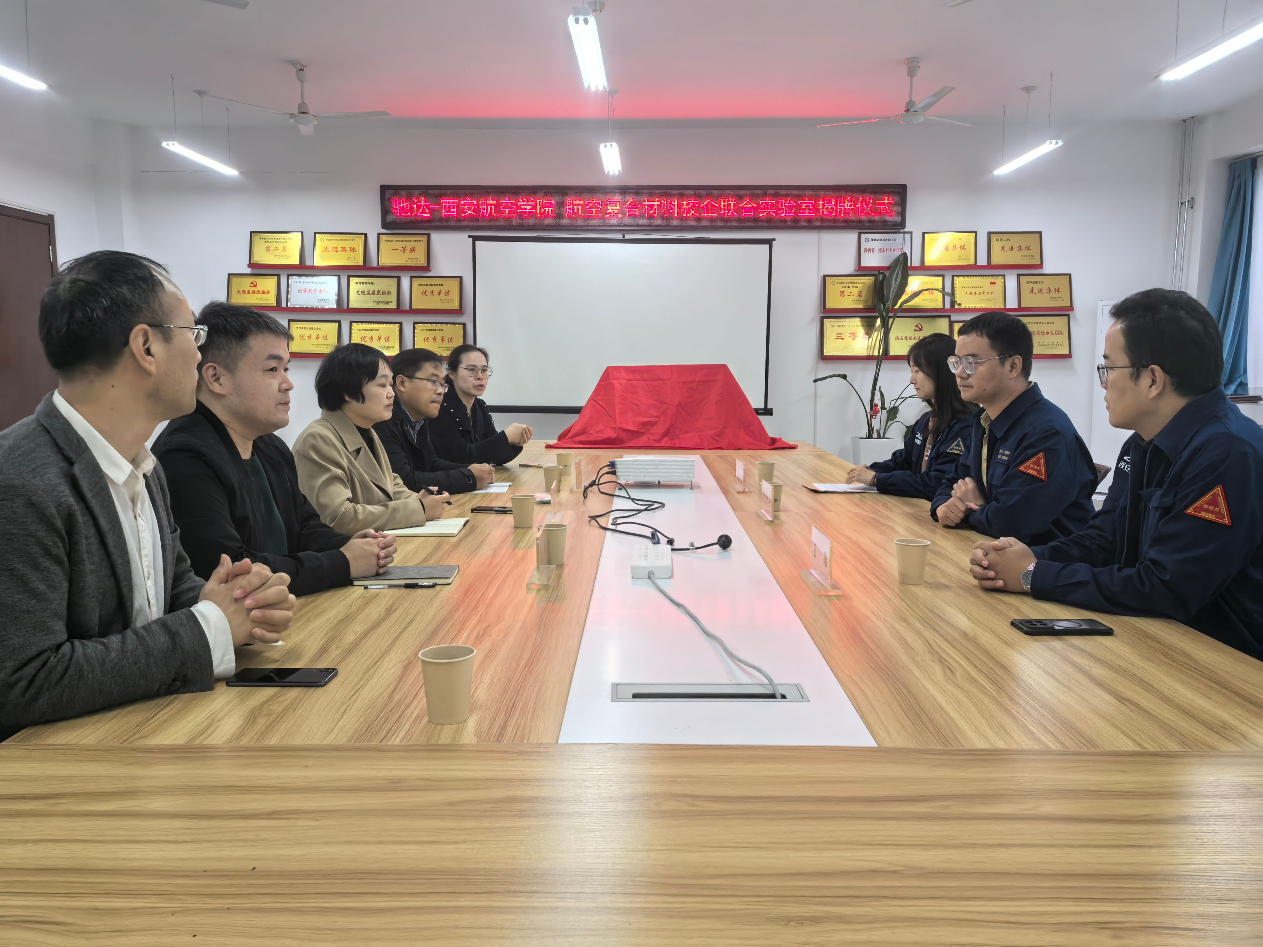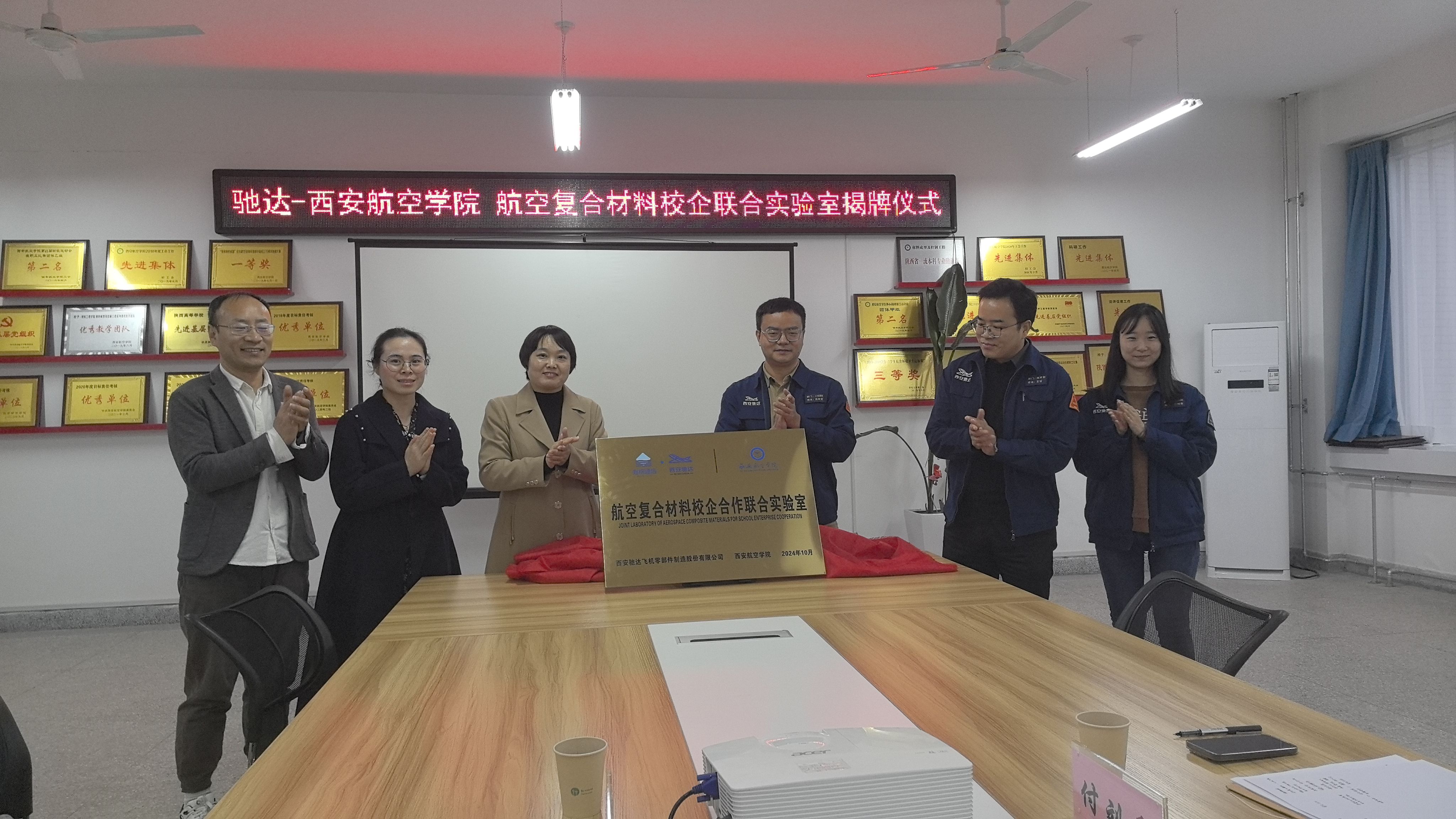 10月30日上午,365上市集团官网于阎良校区4号楼4209会议室举行驰达-365英国上市公司官网航空复合材料校企联合实验室揭牌仪式。仪式由365上市集团官网经理于方丽主持,西安驰达飞机零部件制造股份有限公司人力资源总监范荣军、技术经理王瑶、人力资源专员付刘香以及365上市集团官网副经理李兆、副书记高均立、复合材料与工程专业带头人周影影,系主任孟志新、材料分析测试中心主任陶世平出席了本次揭牌仪式。
