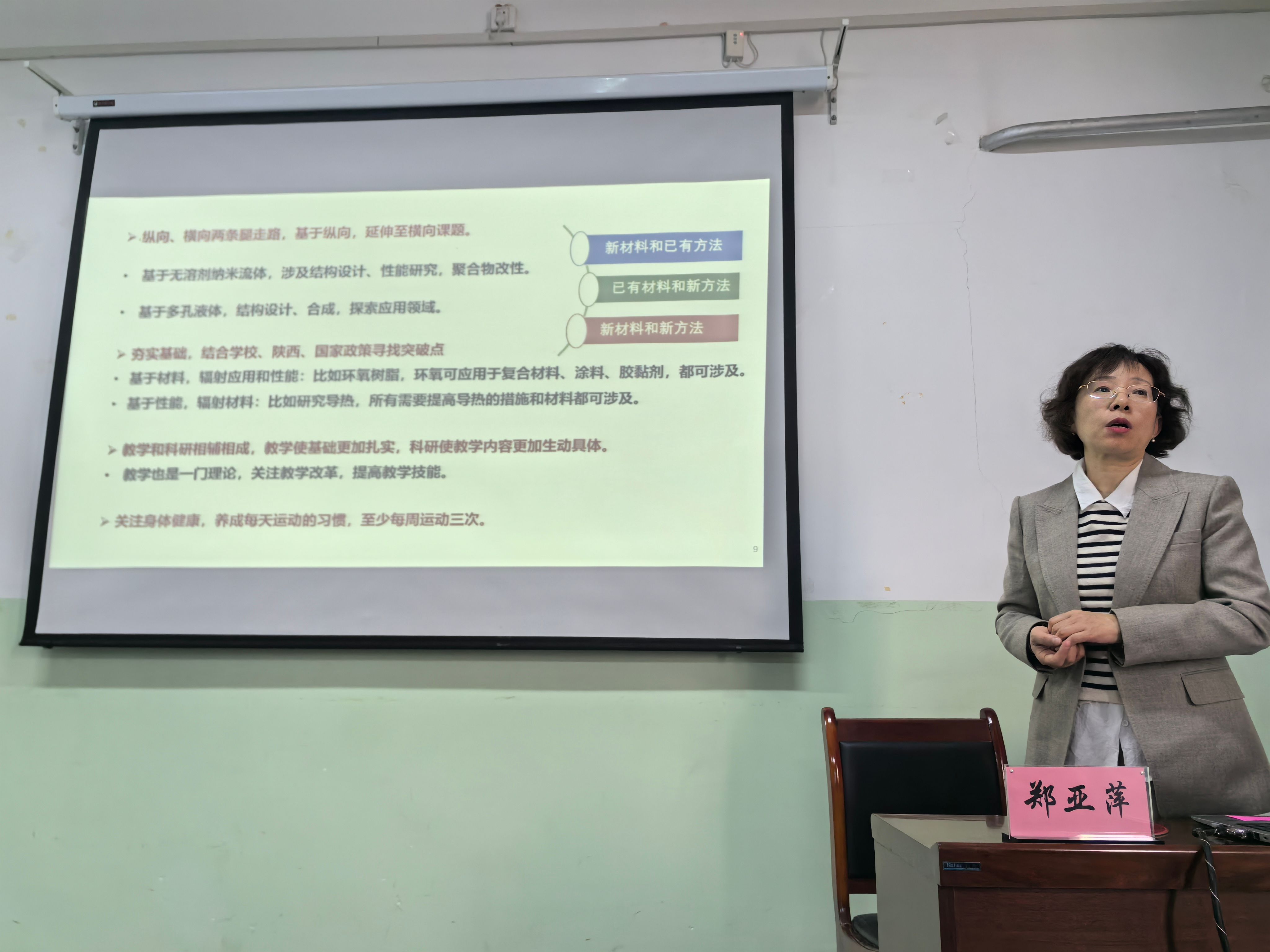 为进一步提升公司教师的科研能力和成果转化水平,1月3日,西北工业大学郑亚萍教授应邀来到公司,作了题为“从研究到应用—高校教师如何基于纵向研究延伸至横向课题”的专题讲座。本次讲座在北楼447会议室举行,由材料公司经理于方丽主持,公司全体教师参与。