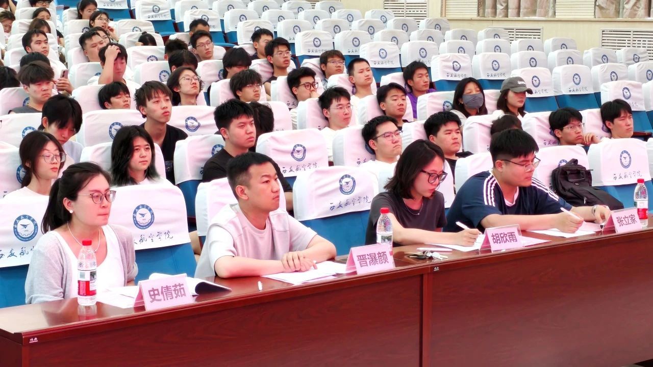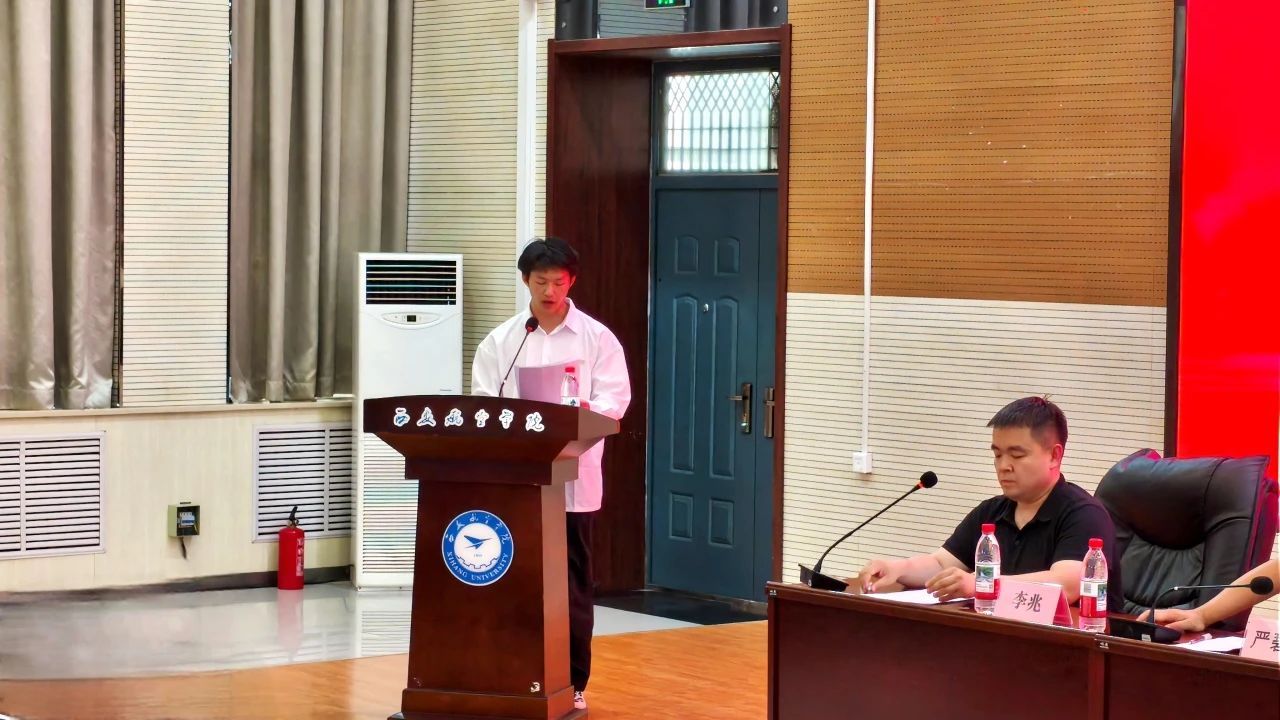 员工代表材科221班毛培杰在发言中呼吁同学们积极响应公司号召,践行良好学风和文明风尚,以实际行动为公司70周年校庆献礼,展现材料学子的青春风采。