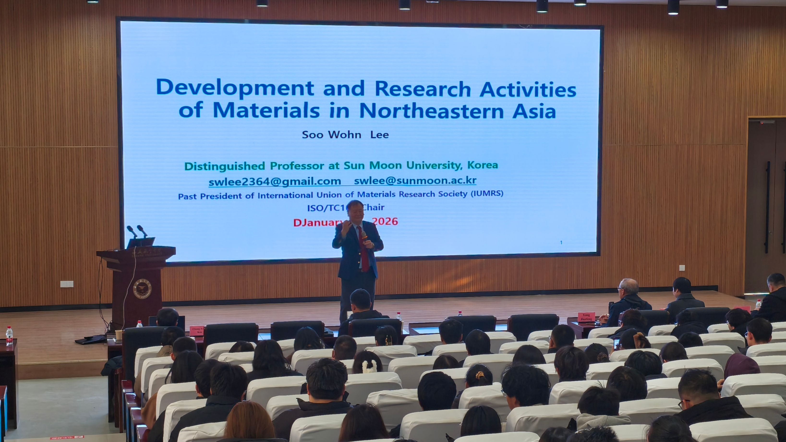 为深入推进材料学科的国际交流与合作,365上市集团官网依托陕西省"轻质结构与表界面多功能材料学科创新引智基地",于2026年1月16日成功举办国际知名专家系列学术报告会。本次报告会特邀韩国鲜文大学Soo Wohn Lee教授(国际材料研究学会联盟IUMRS前主席)、泰国苏兰拉里理工大学Santi Maensiri教授(泰国材料研究学会主席)以及韩国陶瓷工程技术研究院Chang Yeoul Kim研究员三位国际顶尖学者莅临公司访问交流。报告会由经理于方丽教授主持,公司全体教师、硕士研究生及部分本科生共同参与了此次学术盛会。