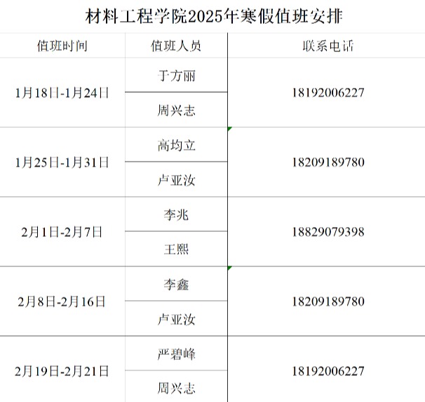 365上市集团官网2025年寒假值班安排