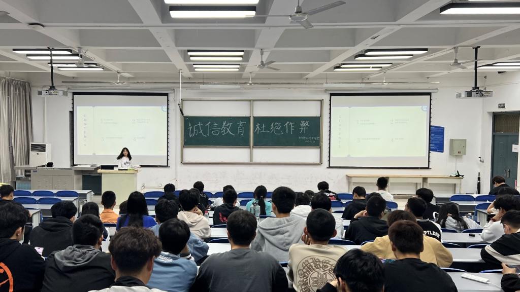 为提高同学们的思想道德素质,自觉遵守校规校校纪,让考试有公正性。为此,公司于5月21日在阶梯教室二举办了“诚信考试”主题讲座。
