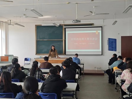 宣讲会上,鲁老师详细介绍了大赛的背景、目的、赛程安排以及参赛要求。她表示:材料热处理作为材料领域的重要分支,对于提升产品质量、延长使用寿命具有重要意义。此次大赛旨在激发同学们对材料热处理技术的兴趣和创新精神,培养一批具有创新能力和实践经验的科技人才,为推动我国材料热处理技术的发展贡献力量。