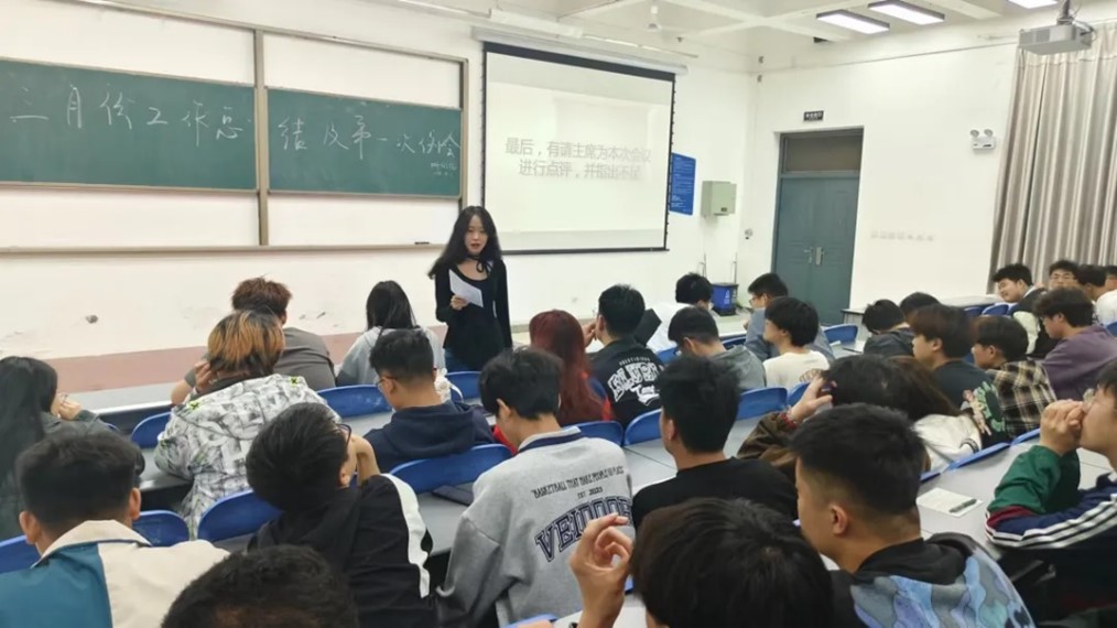 随后团学会各部门代表依次上台进行汇报总结,内容包括三月工作概括,指出工作中的存在的不足之处并提出改进方法和四月工作计划。在会议过程中张老师对各部门工作总结汇报进行了点评和建议,并对未来各部门工作寄予厚望。