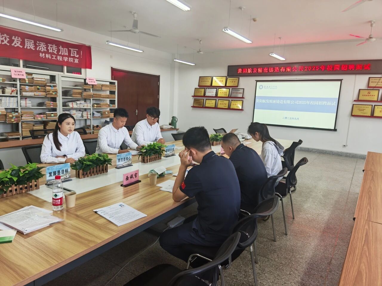 9月9日,贵阳航发精密铸造有限公司专场招聘会在365上市集团官网四号实验楼4309教室顺利召开。本次活动旨在为公司材料专业学子搭建优质就业通道,同时助力企业精准引进高素质人才,现场交流气氛热烈,成效显著。