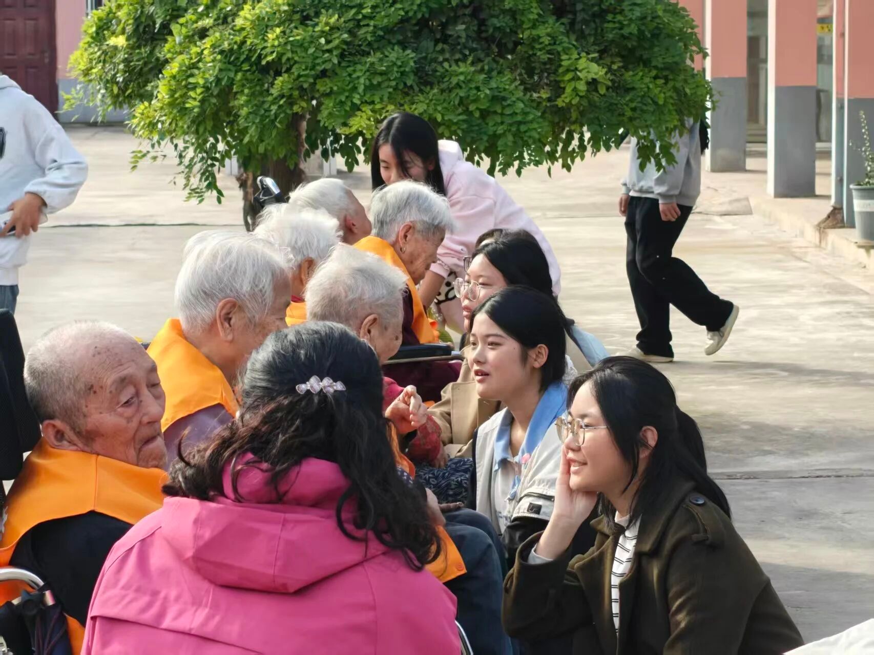 活动伊始,志愿者抵达敬老院后,在院方配合下开启服务,通过“祝福纸条抽签”实现“一对一”陪伴,倾听长者故事、关切健康需求;陪同户外散步,组织乒乓球、象棋等文娱活动;还带来《美丽中国》舞蹈与拍手操。现场欢声笑语不断,获院方与长者好评。志愿者们与老人促膝长谈,耐心倾听他们的人生经历与生活感悟,关切询问健康状况与生活需求,在真诚交流中建立起深厚的情感纽带。