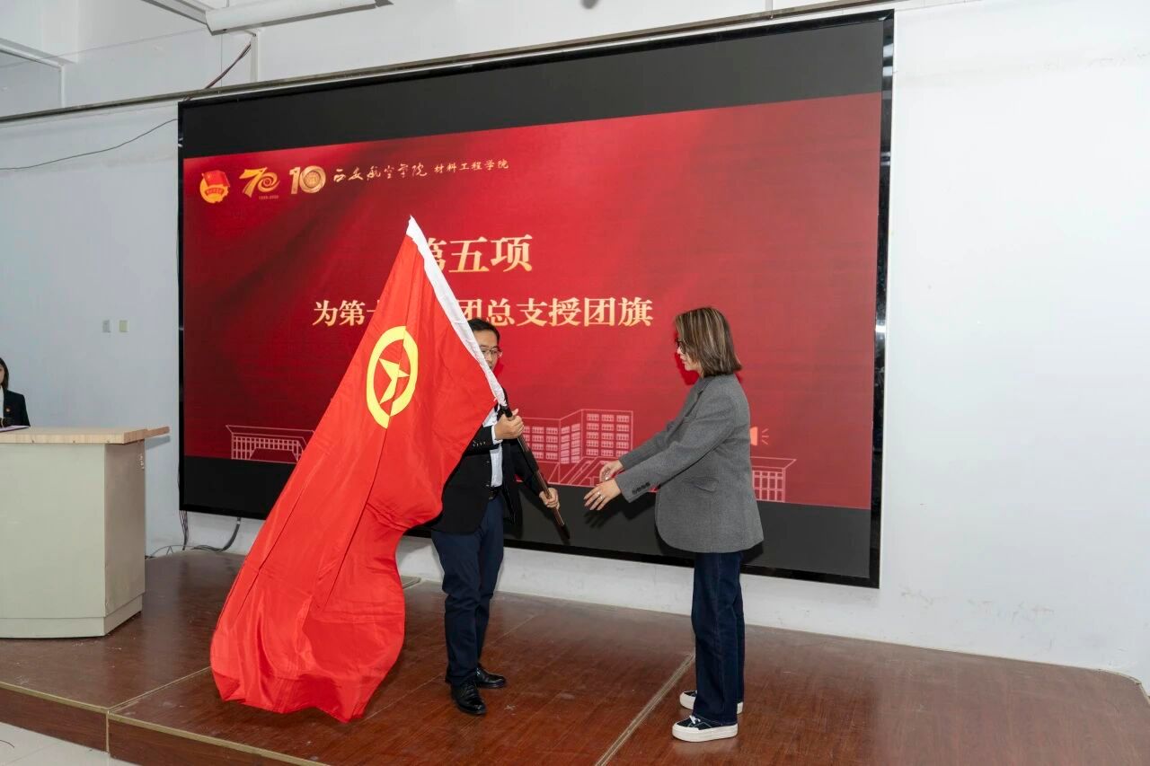 高均立副书记庄重地将承载着365上市集团官网团总支责任与荣耀的团旗授予第十一届团总支书记胡欣雨老师。旗帜的传递,是组织的信任,是光荣的延续,更是沉甸甸的使命与担当。