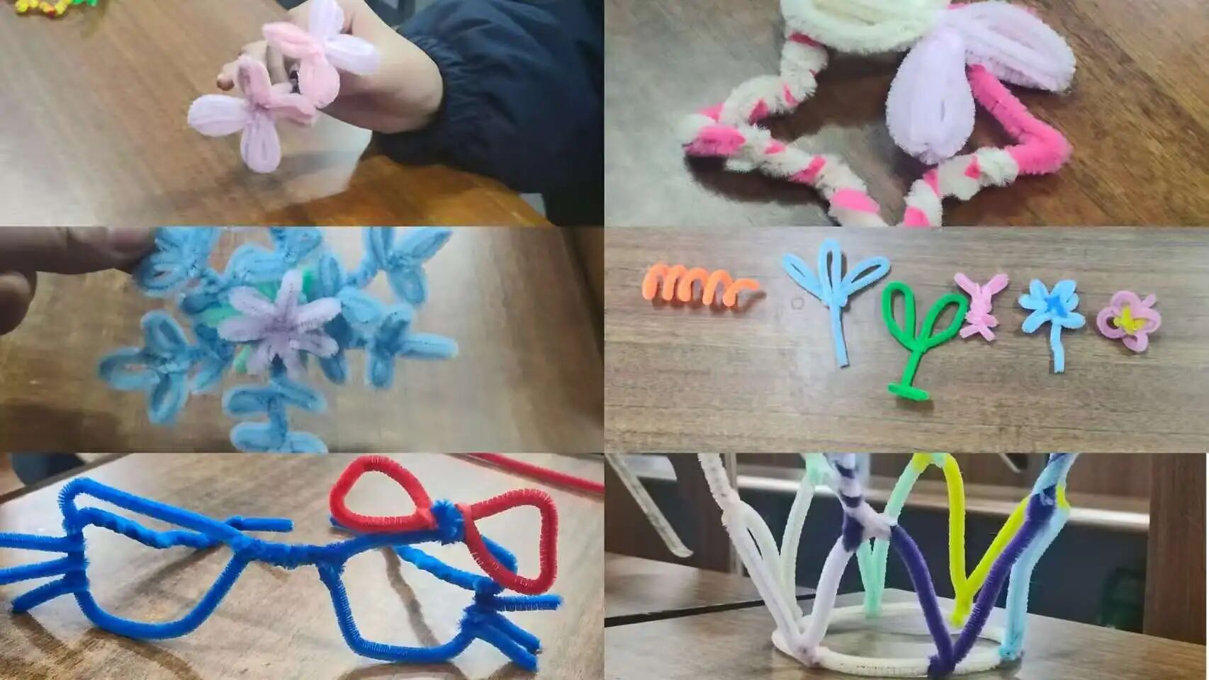 创作环节中,同学们自由发挥创意,通过缠绕、弯曲、拼接等简单操作,搭配心仪色彩、调整独特造型,沉浸式投入专属手工作品的制作。期间,大家还以小组形式交流作品构思、制作心得,分享创作时的心境与灵感,在轻松互动中增进彼此了解。